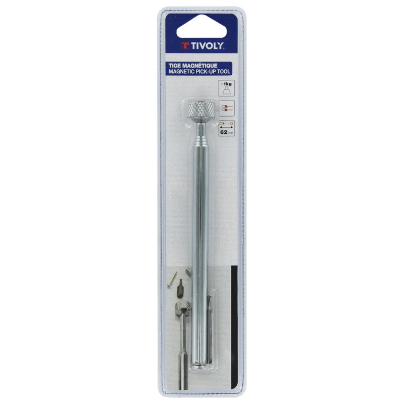 La tige magnétique télescopique TIVOLY de 620 mm est un outil pratique pour récupérer les petits objets métalliques. Dotée d'un aimant puissant, elle supporte un poids maximal de 1 kg.