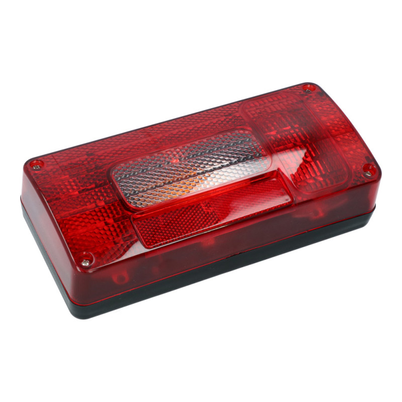 Ce feu assure simultanément les rôles de feu stop, clignotant, feu de position arrière, éclairage de plaque d'immatriculation, feu antibrouillard arrière et réflecteur. Cette intégration permet une signalisation claire et conforme, améliorant la sécurité de l'ensemble routier dans diverses conditions de circulation, de jour comme de nuit.
