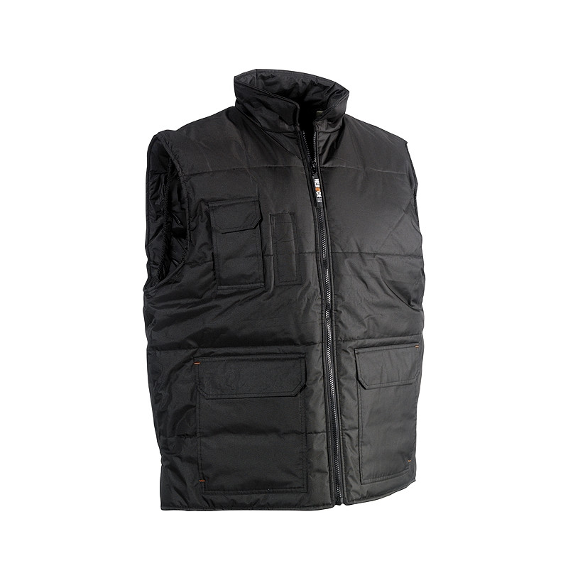 Ce gilet de travail sans manches dispose d'une grande longueur dans le dos pour vous protéger du froid et du vent. De plus, ce gilet noir de taille L possède plusieurs poches.